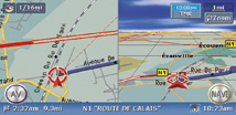 Any confusion when approaching intersections now becomes a thing of the past. This system can display normal 2D view maps, 3D view maps, or both at the same time. Plus there’s a detailed accurate “crossing zoom” view for navigating roundabouts, intersections, etc. The latter is automatically displayed by the system, and can also be selected manually by pressing a key.
