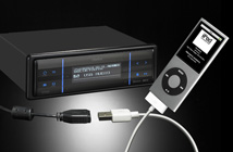 No adapter box required. Just connect the USB cable that’s included with your iPod to the Clarion source unit’s rear USB input and you get complete control of your iPod including genre/album/song title search using the iPod’s control wheel, with high quality sound reproduction through the car speakers. The same connection can also be used to play back audio files stored on USB memory.